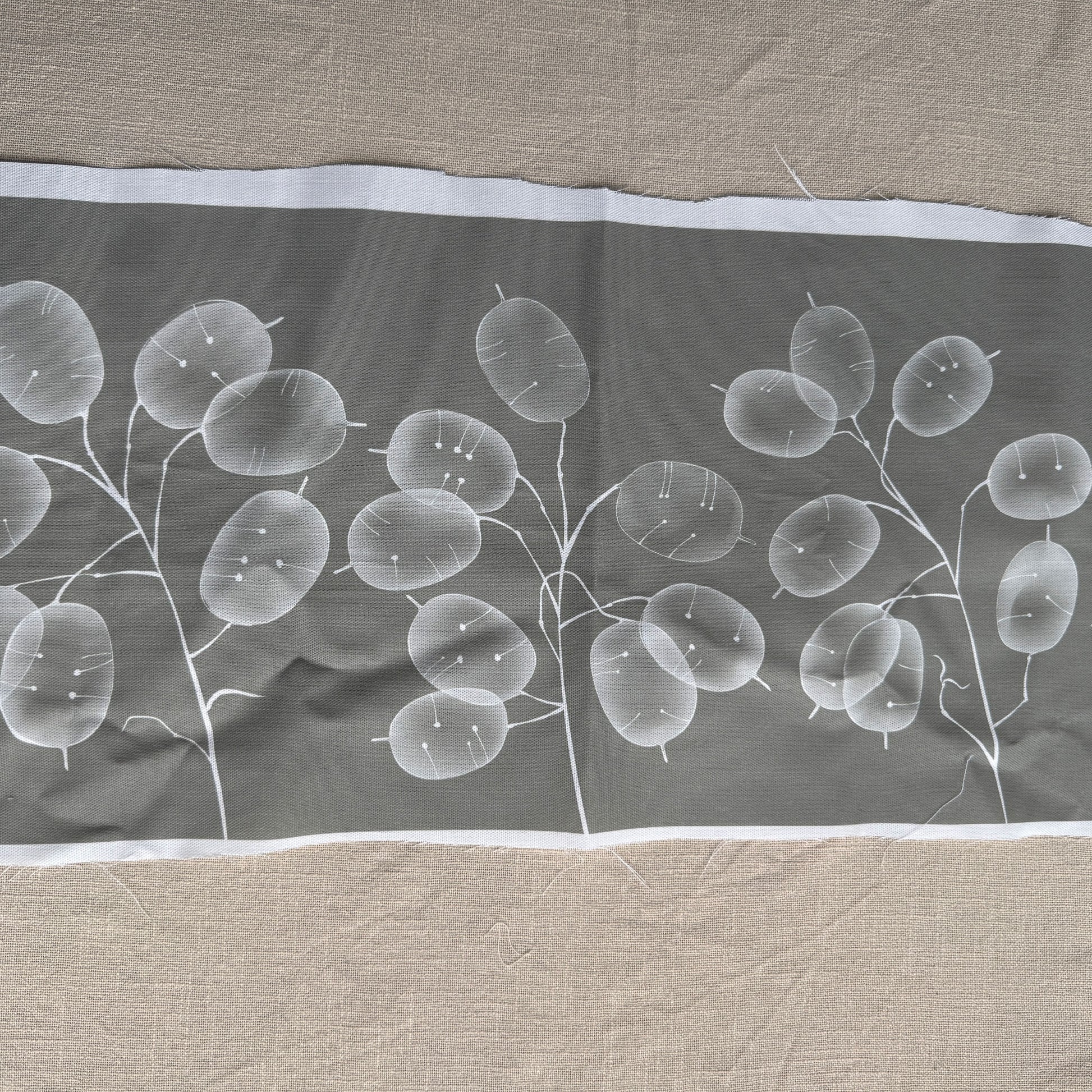 Honesty Seedheads on Dark Grey design printed onto 230gsm cotton fabric.