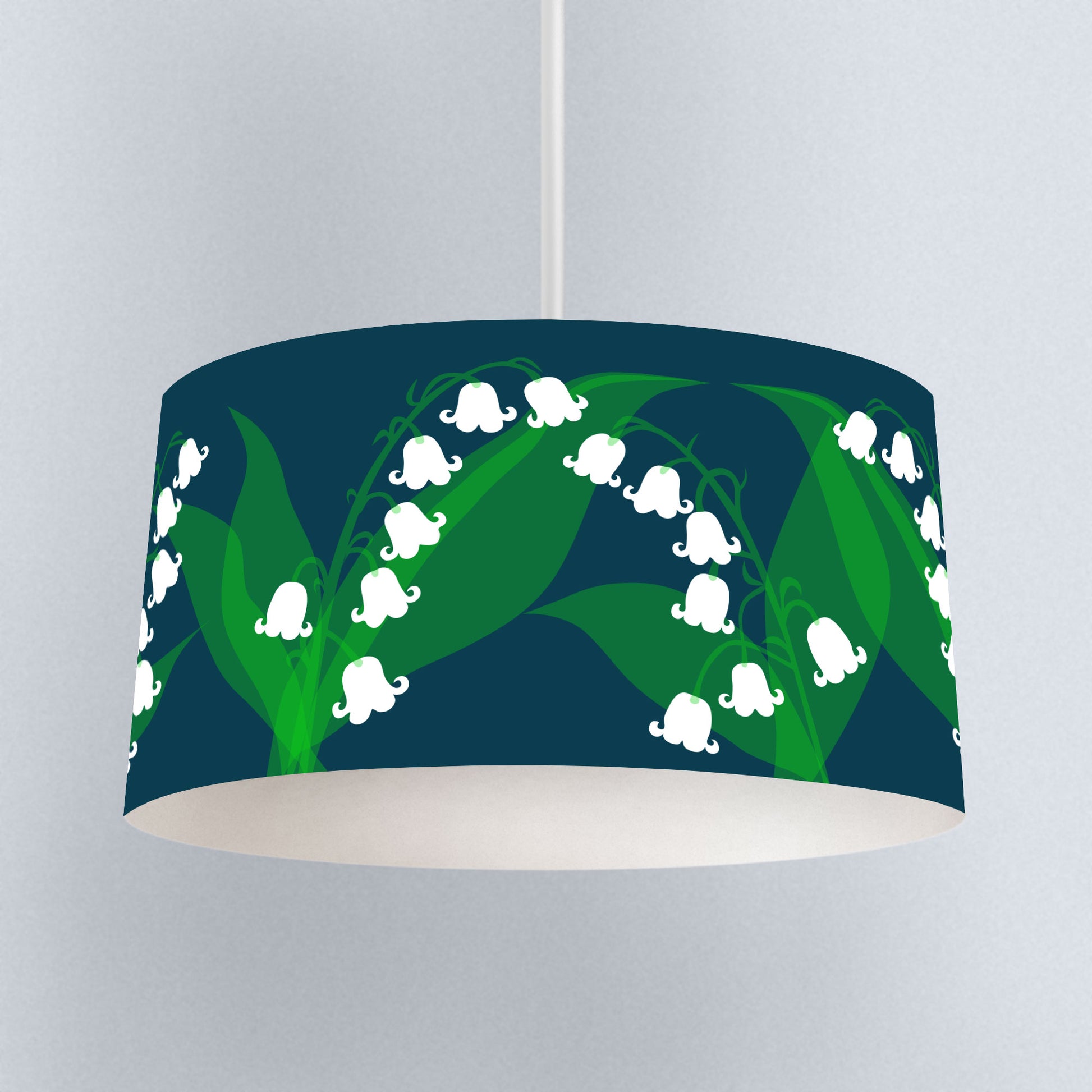 Lily of the Valley Navy Blue Lampshade is made by hand and to order, and the fabric is printed to order, so please expect at least 3 week delivery time.