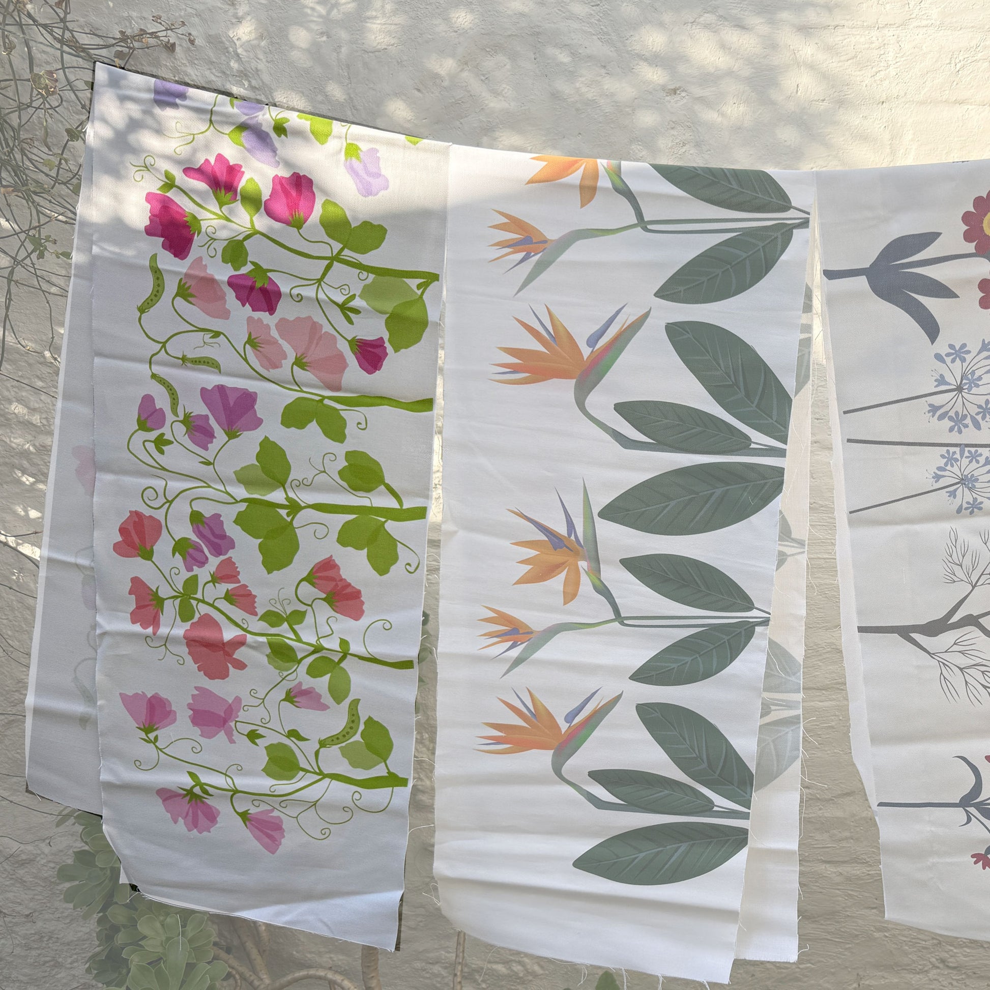 Sweetpeas White design printed onto 230gsm cotton fabric.